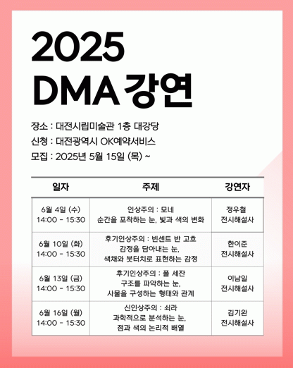 °¿¬Àº Àü¼® ¹«·á·Î ÁøÇàµÇ¸ç, 5¿ù 15ÀÏ ¸ñ¿äÀϺÎÅÍ ´ëÀü±¤¿ª½Ã OK¿¹¾à¼ºñ½º¸¦ ÅëÇØ ¼±Âø¼ø 100¸íÀ» ´ë»óÀ¸·Î »çÀü ½ÅûÀ» ¹Þ´Â´Ù. ½ÅûÇÏÁö ¸øÇÑ °æ¿ì¿¡´Â °¢ °¿¬ ´çÀÏ ÇöÀå¿¡¼ ¼±Âø¼ø 50¸í±îÁö Á¢¼ö°¡ °¡´ÉÇÏ´Ù. ÀÚ¼¼ÇÑ ³»¿ëÀº ´ëÀü½Ã¸³¹Ì¼ú°ü ´©¸®Áý¿¡¼ È®ÀÎÇÒ ¼ö ÀÖ´Ù.