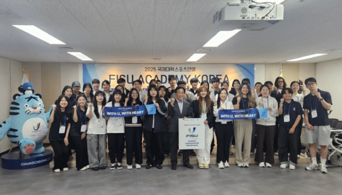 À̳¯ ¡¯FISU ¾ÆÄ«µ¥¹Ì ÄÚ¸®¾Æ ÃæÃ»¡®¿¡¼´Â ¡ãFISU ȸÀåÀÇ Àλ縻¾¸(¿µ»ó)À» ½ÃÀÛÀ¸·Î ¡ã°í·Á´ë ¼¼Á¾Ä·ÆÛ½º ±¹Á¦½ºÆ÷Ã÷ÇкΠÇѳ²Èñ ±³¼öÀÇ ¡®±¹Á¦½ºÆ÷Ã÷ À̺¥Æ® °ü¸®¡¯ °¿¬ ¡ãÇöÀç FISU Çлý ´ë»çÀÎ ³ë¿¹¸°ÀÇ FISU Çлý ´ë»ç Áö¿ø °è±â¿Í ±¹Á¦½ºÆ÷Ã÷ Ȱµ¿ °æÇè´ã °øÀ¯ ¡ã2027 ÃæÃ» À¯´Ï¹ö½Ã¾Æµå´ëȸ¸¦ ÁÖÁ¦·Î ÇÑ Á¶º° Åä·Ð ¹× ¹ßÇ¥·Î ÇÁ·Î±×·¥À» ÁøÇàÇß´Ù.