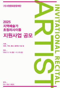 ÀÌ »ç¾÷Àº ¼Ãµ±ºÀ» Áß½ÉÀ¸·Î Ȱµ¿ÇÏ´Â Áö¿ª ¿¹¼ú°¡¸¦ ¹ß±¼¡¤Áö¿øÇÏ¿© Áö¿ª¹®È Ȱ¼ºÈ¿¡ ±â¿©ÇϰíÀÚ, °ø¿¬ ¿¹¼ú ºÐ¾ß(Ŭ·¡½Ä, ´ëÁßÀ½¾Ç, ±¹¾Ç)¸¦ Áß½ÉÀ¸·Î 3ÀÎ À̳»ÀÇ ¿¹¼ú°¡¸¦ ¼±Á¤ÇÑ´Ù.