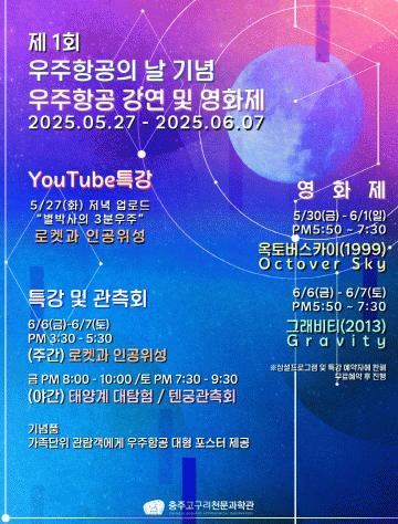 ¿ìÁÖÇ×°øÀÇ ³¯À» È«º¸Çϰí, ¿ìÁÖÇ×°ø¿¡ ´ëÇÑ ¾î¸°À̵éÀÇ ²ÞÀ» Ű¿öÁÖ±â À§ÇØ À̹ø Çà»ç ±â°£ µ¿¾È ¾ÆÀ̵éÀ» µ¿¹ÝÇϰí õ¹®°úÇаüÀ» ¹æ¹®ÇÏ´Â °¡Á·´ÜÀ§ °ü¶÷°´µé¿¡°Ô´Â ¿ìÁÖÇ×°ø°ú °ü·ÃµÈ ´ëÇü Æ÷½ºÅ͸¦ ±â³äǰÀ¸·Î Á¦°øÇÑ´Ù.