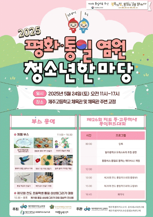 Çà»ç´Â Áß¡¤°íµîÇлý ´ë»ó ÅëÀÏ ÄûÁî ¿Õ ¼±¹ß, ÃʵîÇлý ´ë»ó ÅëÀÏ »ó»óÈ ±×¸®±â ´ëȸ, ÅëÀÏ Ã¼Çè°ø°£ ¿î¿µ µîÀ¸·Î ´Ùä·Ó°Ô ±¸¼ºµÆÀ¸¸ç ¸¹Àº ÇлýµéÀÇ Âü¿©¿Í È£ÀÀÀ» À̲ø¾î³Â´Ù.
