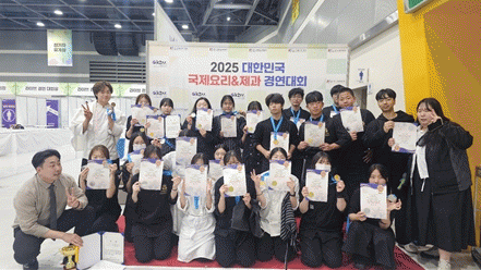 2024³â¿¡µµ KICC ±¹Á¦¿ä¸®¡¤Á¦°ú°æ¿¬´ëȸ¿¡ Âü°¡ÇÏ¿© Àü¿ø ¼ö»óÇÏ´Â µî ÇöÀç 8³â ¿¬¼Ó ±Ý¸Þ´ÞÀ» ¼ö»óÇϰí ÀÖÀ¸¸ç, ±âŸ Àü±¹´ëȸ¿Í ±â´É°æ±â´ëȸ¿¡ Âü°¡ÇÏ¿© ÁÁÀº »óÀ» ¼ö»óÇϸç Çб³ÀÇ ¸í¿¹¸¦ µå³ôÀ̰í ÀÖ´Ù.