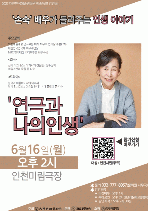´ëÇѹα¹¿¹¼ú¿ø ÁÖÃַΠȵµÁø¹®È¿øÀÌ ÁÖ°üÇϰí ÀÎõ¹Ì¸²±ØÀåÀÌ ÈÄ¿øÇÏ¿© °³ÃֵǴ À̹ø °¿¬È¸´Â ¿¬±â¶ó´Â ¿¹¼úÀ» ÅëÇØ Àΰ£ÀÇ °¨Á¤°ú Á¸ÀçÀÇ ±íÀ̸¦ Ç¥ÇöÇÑ ¼Õ¼÷ÀÌ ¹è¿ì·Î¼ »î°ú ¹«´ë À§ Àλý À̾߱⸦ ÀÎõ½Ã¹Îµé¿¡°Ô µé·ÁÁÖ´Â ¶æ±íÀº ÀÚ¸®´Ù.