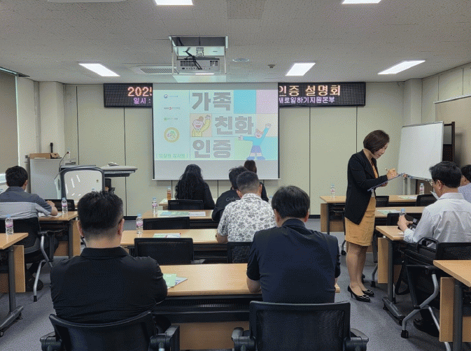 À̳¯ ¼³¸íȸ¿¡´Â °¡Á·Ä£ÈÀÎÁõÁ¦µµ¿¡ °ü½ÉÀÖ´Â °ü³» 16°³ ±â¾÷ÀÇ 18¸í ±â¾÷ÀεéÀÌ Âü¼®ÇÑ °¡¿îµ¥ °¡Á·Ä£ÈÀÎÁõÀ» ÁغñÇÏ´Â ±â¾÷ ´ë»óÀ¸·Î ÀÎÁõÁ¦µµ ¹× ½É»ç±âÁØ µî »ç¾÷ Àü¹Ý¿¡ ´ëÇÑ ¾È³», ±×·ìÄÁ¼³ÆÃÀÌ ÁøÇàµÆ´Ù.