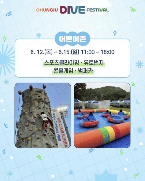 ¿¡¾î¹Ù¿î½º, ¹°³îÀÌÁ¸, ´ÙÀ̺ê±âÂ÷, ½ºÆ÷Ã÷Ŭ¶óÀ̹Ö, À¯·Î¹øÁö, À£ºù °Ç°Ã¼Çè µî ¼¼´ëº° ¸ÂÃãÇü üÇèÁ¸ÀÌ ¿î¿µµÇ¸ç, °¨¼º¹ö½º Åõ¾î µî ÃæÁÖÀÇ °ü±¤Áö¿Í ¿¬°èÇÑ Ã¼Çè ÇÁ·Î±×·¥µµ ¸¶·ÃµÈ´Ù.