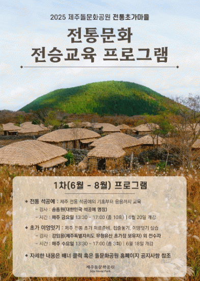 1Â÷(6¿ù~8¿ù)¿¡´Â ¡ã¼®°ø¿¹¿Í ¡ãÃʰ¡ À̾ûÀÕ±â ÇÁ·Î±×·¥ÀÌ ÁøÇàµÇ¸ç, ¼®°ø¿¹´Â ¼ÛÁ¾¿ø(´ëÇѹα¹ ¼®°ø¿¹ ¸íÀå) ¼±»ýÀ» ÃʺùÇÏ¿© Á¦ÁÖ Çö¹«¾ÏÀ» ÀÌ¿ëÇÑ µ¿ÀÚ¼® Á¶°¢ µî ÀüÅë ¼®°ø¿¹¸¦ Àü¼öÇÑ´Ù. Ãʰ¡ À̾ûÀÕ±â´Â °ÀÓ¿ë(Á¦ÁÖÆ¯º°ÀÚÄ¡µµ ¹«ÇüÀ¯»ê Ãʰ¡Àå º¸À¯ÀÚ) ¼±»ý¹× À̼öÀÚ, Àü¼öÀåÇлýÀÌ ÇÔ²² Á¦ÁÖ ÀüÅëÃʰ¡ ÁöºØÀÇ ÁýÁÙ³õ±â, À̾ûÀձ⸦ ½Ç½ÀÇØ º¼ ¼ö ÀÖ´Ù. 2Â÷´Â ÇâÈÄ 9¿ùºÎÅÍ ÁøÇàµÉ ¿¹Á¤ÀÌ´Ù.