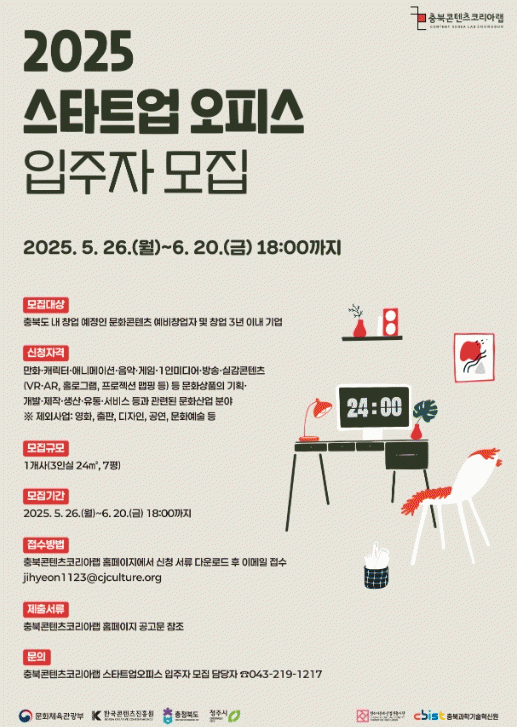 ûÁֽð¡ ÁÖ°üÇϰí ûÁֽù®È»ê¾÷ÁøÈïÀç´ÜÀÌ ¿î¿µÇÏ´Â ÃæºÏÄÜÅÙÃ÷ÄÚ¸®¾Æ·¦Àº ¡®½ºÅ¸Æ®¾÷ ¿ÀÇǽº¡¯ 1°³½Ç(3ÀνÇ) ÀÔÁÖÀÚ¸¦ ¸ðÁýÇÑ´Ù.