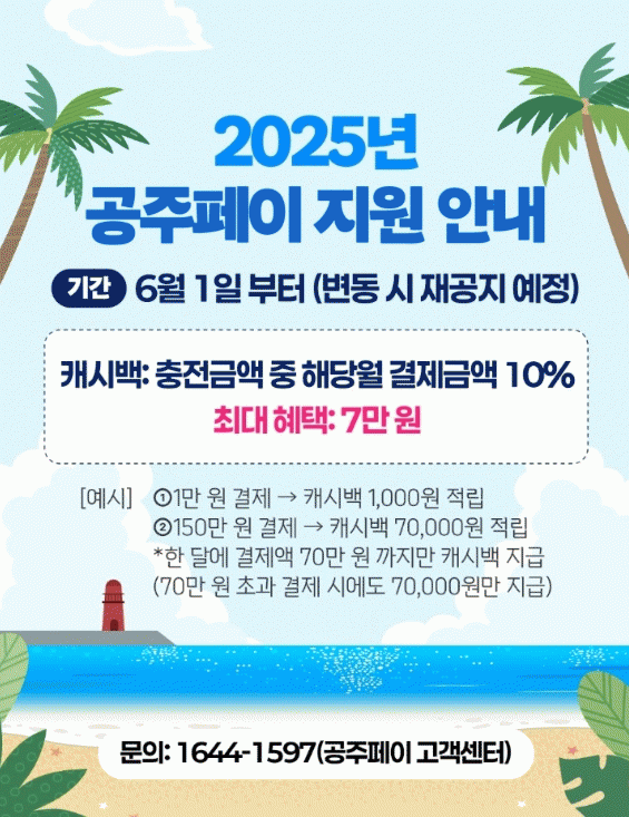 ÀÌ¿¡ µû¶ó ÃæÀüÀϰú °ü°è¾øÀÌ ¿ù 70¸¸ ¿ø Çѵµ ³»¿¡¼ ÇØ´ç ¿ù¿¡ °øÁÖÆäÀÌ·Î °áÁ¦ÇÑ ±Ý¾× Áß 10%ÀÇ Ä³½Ã¹éÀÌ Àû¿ëµÇ¸ç, ÃÖ´ë 7¸¸ ¿ø±îÁö ÇýÅÃÀ» ¹ÞÀ» ¼ö ÀÖ´Ù.