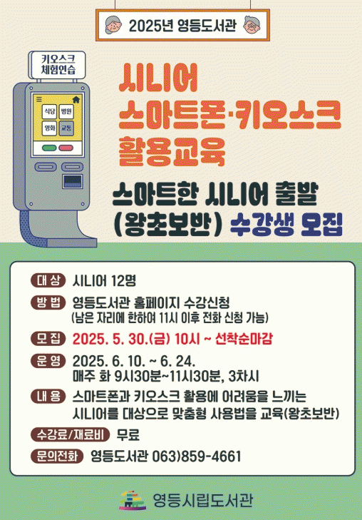 À̹ø ±³À°Àº ½º¸¶Æ®Æù°ú Ű¿À½ºÅ©(¹«ÀÎÁÖ¹®±â) »ç¿ë¿¡ ¾î·Á¿òÀ» °Þ´Â ¿ÕÃʺ¸ ½Ã´Ï¾î¸¦ ´ë»óÀ¸·Î Çϸç, ±âº» ±â´ÉºÎÅÍ ½Ç»ýȰ¿¡ À¯¿ëÇÑ È°¿ë¹ý±îÁö ÀÍÈú ¼ö ÀÖµµ·Ï ±¸¼ºµÆ´Ù.
