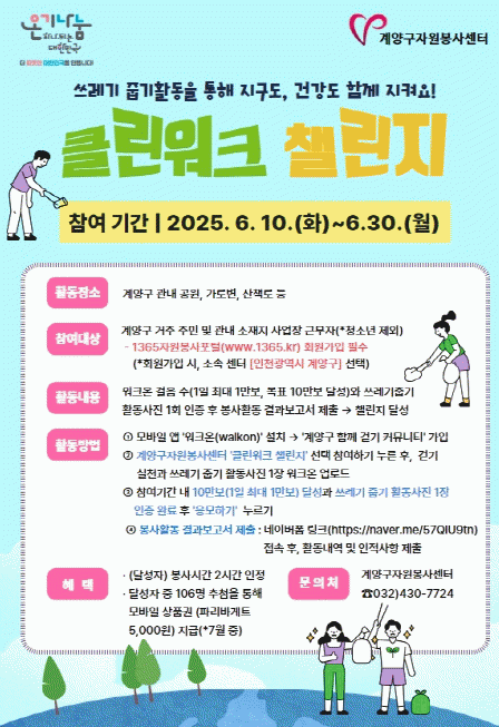¼¾ÅÍ °ü°èÀÚ´Â ¡°Å¬¸°¿öÅ© 縰Áö´Â µðÁöÅÐ ±â¹Ý °È±â ¾Û°ú ȯ°æÁ¤È ÀÚ¿øºÀ»ç¸¦ Á¢¸ñÇÑ ÇÁ·Î±×·¥À¸·Î, ÁÖ¹ÎÀÇ °Ç°ÇÑ »ýȰ½À°ü Çü¼ºÀº ¹°·Ð Áö¿ª ³» ÀÚ¿øºÀ»ç Âü¿© È®»ê°ú ź¼ÒÁ߸³ ½Çõ¿¡µµ ÀÇ¹Ì ÀÖ´Â ±â¿©¸¦ ÇÒ °ÍÀ¸·Î ±â´ëµÈ´Ù.¡±¶ó°í ÀüÇß´Ù.