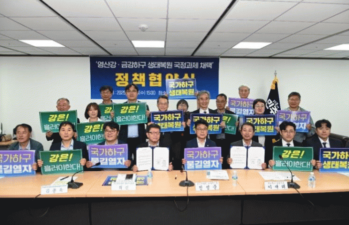 À̳¯ Çù¾à½Ä¿¡¼ ÀÌ ÀÇ¿øÀº ¡°±Ý°°ú ¿µ»ê° Çϱ¸ ÇØ¼öÀ¯ÅëÀ» ÅëÇÑ »ýÅ º¹¿øÀº ´õ ÀÌ»ó ¹æÄ¡ÇÒ ¼ö ¾ø´Â ±¹°¡°úÁ¦¡±¶ó¸é¼ ¡°¼öÁú °³¼±°ú ±â¼ö¿ª º¹¿øÀ» ÅëÇØ Áö¿ª¼Ò¸ê°ú ±¹°¡±ÕÇü¹ßÀüÀ» ÀÌ·ç¾î³¾ ¼ö ÀÖµµ·Ï ´ë¼± ±¹Á¤°úÁ¦ äÅÃÀ» À§ÇØ ÃÖ¼±À» ´ÙÇϰڴ١±°í ¹àÇû´Ù.