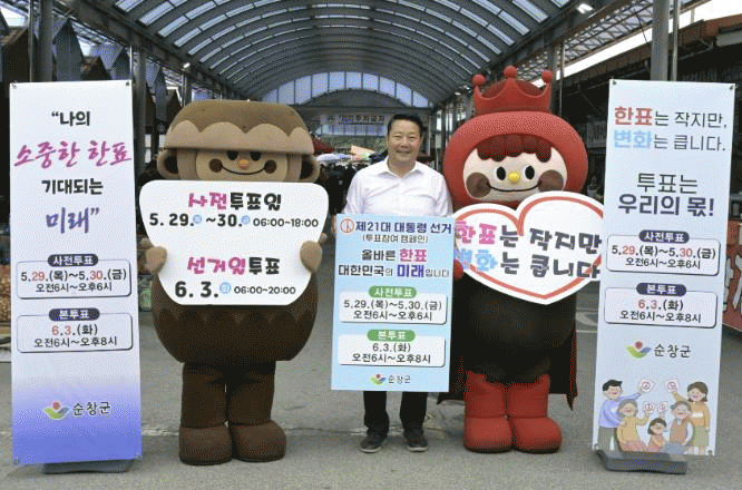 ÃÖ¿µÀÏ ¼øÃ¢±º¼ö´Â¡®ÅõÇ¥ Âü¿©¡¯ÇÇÄÏÀ» Á¦ÀÛÇÏ¿© À峯 ÀüÅë½ÃÀå°ú Çà»çÀå µî ÁֹεéÀ» ¸¸³ª´Â Àå¼Ò¸¶´Ù ¼±°ÅÀϰú »çÀüÅõÇ¥ ÀÏÁ¤, ÅõÇ¥¼Ò Á¤º¸ µîÀ» ¼³¸íÇϸç ÅõÇ¥ µ¶·Á¿¡ °¡Àå ¾ÕÀå¼¹´ø °ÍÀ¸·Î ¾Ë·ÁÁ³´Ù.