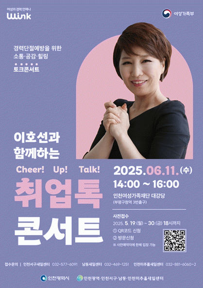 ¡º2025 ÀÌÈ£¼±°ú ÇÔ²²ÇÏ´Â Ãë¾÷ÅåÄܼƮ(Cheer Up Talk)¡»°¡ ¿À´Â 6¿ù 11ÀÏ ¿ÀÈÄ 2½Ã, ÀÎõ¿©¼º°¡Á·Àç´Ü ´ë°´ç¿¡¼ °³ÃֵȴÙ.