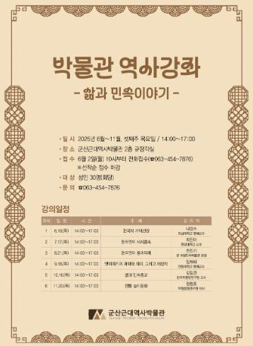 ±º»ê±Ù´ë¿ª»ç¹Ú¹°°ü ¿ª»ç°Á´ ´ë¸é °Á·Π6¿ùºÎÅÍ 11¿ù±îÁö ¸Å¿ù ¼Â° ÁÖ ¸ñ¿äÀÏ ¿ÀÈÄ 2½Ã¿¡ ÁøÇàÇÑ´Ù.