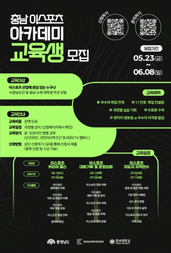 ±³À°°úÁ¤º° ¸ðÁý°ø°í´Â Ãæ³²Á¤º¸¹®È»ê¾÷ÁøÈï¿ø ȨÆäÀÌÁö ¶Ç´Â SNS¸¦ ÅëÇØ È®ÀÎ °¡´ÉÇϸç Âü°¡ ½Åû ¹× ÇÁ·Î±×·¥ ¹®ÀÇ´Â QRÄÚµå ¹× Ãæ³² À̽ºÆ÷Ã÷ °æ±âÀå µð½ºÄÚµå ä³ÎÀ» ÅëÇØ °¡´ÉÇÏ´Ù.