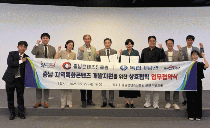 À̹ø Çù¾àÀº Ãæ³² Áö¿ªÀÇ ¿ª»çÀû ÀÚ»êÀÎ µ¶¸³¿îµ¿À» ÄÜÅÙÃ÷»ê¾÷°ú ¿¬°èÇÔÀ¸·Î½á, Áö¿ªÀÇ ¿ª»ç¡¤¹®È ÄÜÅÙÃ÷¸¦ dzºÎÇÏ°Ô Çϰí Á¤Ã¼¼º °È¿¡ ±â¿©ÇÒ °ÍÀ¸·Î ±â´ëµÈ´Ù. ¾ç ±â°üÀº ¾ÕÀ¸·Îµµ Áö¼ÓÀûÀÎ Çù·ÂÀ» ÅëÇØ Ãæ³² Áö¿ªÀÇ ¹®ÈÀû °¡Ä¡¸¦ ³ôÀ̰í, Áö¿ª ÄÜÅÙÃ÷»ê¾÷ÀÇ °æÀï·Â °È¸¦ À§ÇÑ ¼º°ú¸¦ âÃâÇÒ ¹æÄ§ÀÌ´Ù.