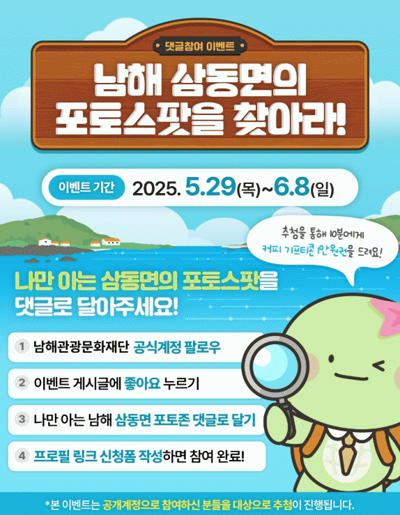 ¸ÕÀú ³²Çرº°ü±¤¹®ÈÀç´Ü ÀνºÅ¸±×·¥À» ÆÈ·Î¿ìÇϰí À̺¥Æ® °Ô½Ã¹°¿¡ ¡®ÁÁ¾Æ¿ä¡¯¸¦ ´·¯ÁØ µÚ ¡â¡®»ïµ¿¸é Æ÷ÅäÁ¸ ´ñ±Û¡¯¾²±â ¡âÀç´Ü ÇÁ·ÎÇÊ ¸µÅ©ÀÇ ¡®½ÅûÆû¡¯ ÀÛ¼ºÀ» Çϸé Âü¿©°¡ ¿Ï·áµÈ´Ù.