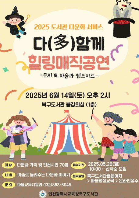 Âü°¡ ½ÅûÀº ºÏ±¸µµ¼°ü ´©¸®Áý¿¡¼ ¼±Âø¼ø Á¢¼öÇϸç, ÀÚ¼¼ÇÑ ¹®ÀÇ´Â ¸¶À»±³À°Áö¿ø°ú·Î ÇÏ¸é µÈ´Ù.