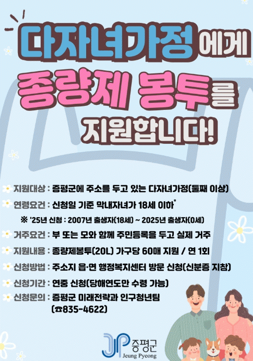 Áö¿ø ´ë»óÀº ¸·³» Àڳడ 18¼¼ ÀÌÇÏ(2007~2025³â»ý)ÀÎ 2ÀÚ³à ÀÌ»ó ´ÙÀڳడÁ¤À¸·Î ½ÅûÀÏ ±âÁØ ºÎ ¶Ç´Â ¸ð°¡ ÀÚ³à ¸ðµÎ¿Í ÇÔ²² ÁõÆò±º¿¡ Áֹεî·ÏÀ» µÎ°í °ÅÁÖÇØ¾ß ÇÑ´Ù.
