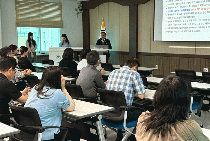 ¿Áõ±³À°Áö¿øÃ» ±èÀ뱂 ±³À°ÀåÀº ¡°À̹ø ±³À°Àº ´Ü¼øÇÑ ¹ý·É ¾È³»¸¦ ³Ñ¾î, Á÷Àå ±¸¼º¿ø ¸ðµÎ°¡ ¼·Î¸¦ Á¸ÁßÇÏ´Â °Ç°ÇÑ Á¶Á÷¹®È¸¦ ÇÔ²² ¸¸µé¾î°¡´Â Ãâ¹ßÁ¡¡±À̶ó¸ç, ¡°±³À°±â°üÀ¸·Î¼ °ø°ø¼º°ú ½Å·Ú¸¦ ³ôÀ̱â À§ÇÑ Áö¼ÓÀûÀÎ ³ë·ÂÀ» ±â¿ïÀ̰ڴ١±°í ¸»Çß´Ù.