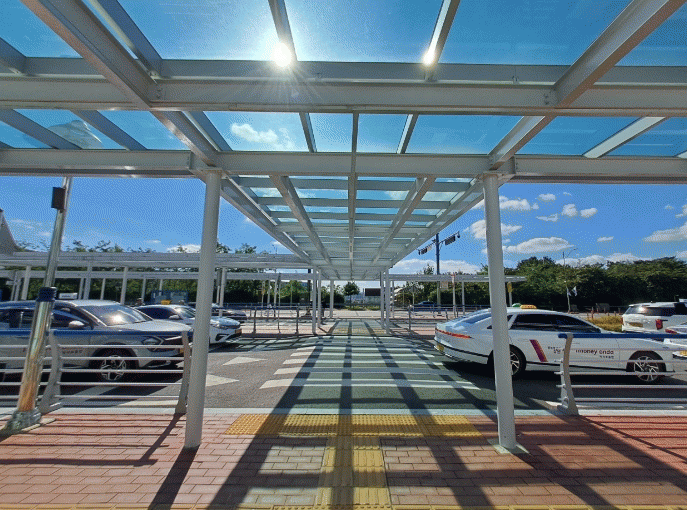 ¼³Ä¡µÇ´Â ºñ°¡¸²¸·Àº ±æÀÌ 80m, Æø 3m, ÃÑ ¸éÀû 240§³ ±Ô¸ð·Î, Å͹̳ΠÁÖ¿ä ÃâÀÔ±¸¿Í ¹ö½º¡¤Åýà ½ÂÇÏÂ÷ ´ë±â °ø°£À» ¿¬°áÇϰí, À̿밴µéÀÇ Á¢±Ù µ¿¼±À» °í·ÁÇÏ¿© ¹èÄ¡ÇÒ ¿¹Á¤ÀÌ´Ù. ƯÈ÷, ³ë¾àÀÚ, ÀÓ»êºÎ µî ±³Åë¾àÀÚ¸¦ À§ÇØ Åõ¸íÇÏ°í ½½¸²ÇÑ ±¸Á¶·Î ½Ã°¢Àû ÆíÀǸ¦ µµ¸ðÇÒ °èȹÀÌ´Ù.