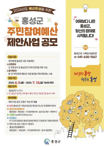 À̹ø °ø¸ð´Â ¿À´Â 9ÀϺÎÅÍ 7¿ù 18ÀϱîÁö ÁøÇàµÇ¸ç, È«¼º±º¹ÎÀÌ¸é ´©±¸³ª Âü¿©ÇÒ ¼ö ÀÖ´Ù. ´Ü, È«¼º±º ¼Ò¼Ó °ø¹«¿ø, ÃâÀÚ¡¤Ã⿬±â°ü ¹× »êÇÏ Áö¹æ°ø±â¾÷ Á¾»çÀÚ´Â Âü¿©°¡ Á¦ÇѵȴÙ.