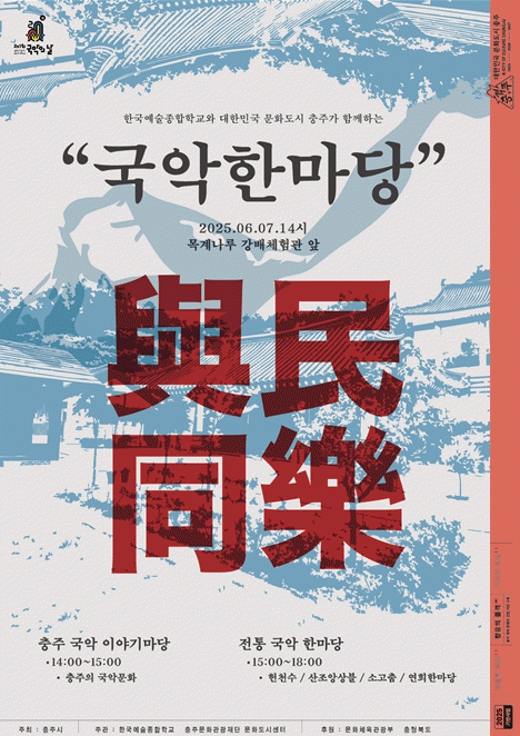 ƯÈ÷ 6¿ù 7ÀÏ Çà»ç¿¡¼´Â ÃæÁÖÀÇ ±¹¾Ç¹®È¿Í ¾ÕÀ¸·ÎÀÇ ¹ßÀü ¹æÇâÀ» ÁÖÁ¦·Î ÇÑ À̾߱⠸¶´çÀÌ ¿·Á, ÇÑ¿¹Á¾ ÀüÅ뿹¼ú¿ø ±³¼ö¿Í Áö¿ª ±¹¾Ç ºÐ¾ß Àü¹®°¡µéÀÌ Âü¿©ÇÏ´Â ÅäÅ©¼î°¡ ÁøÇàµÈ´Ù. ¶ÇÇÑ ÀüÅë ±¹¾Ç ÇѸ¶´ç¿¡¼´Â ÇÑ¿¹Á¾ ÀüÅ뿹¼ú¿øÀÇ Çåõ¼ö, »êÁ¶ ¾Ó»óºí, ¼Ò°íÃã, ¿¬Èñ ÇѸ¶´ç µî ´Ù¾çÇÑ °ø¿¬ÀÌ ¸ñ°è³ª·ç¿¡¼ ¸ðµÎ ¹«·á·Î ÆîÃÄÁø´Ù.