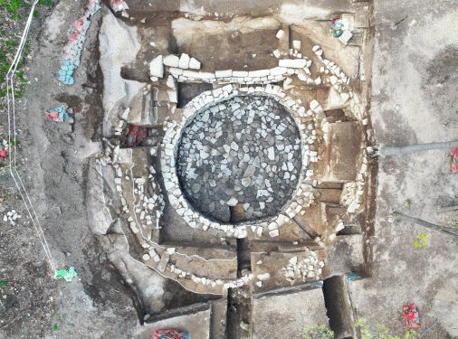 À̹ø Á¶»ç´Â ¹Ì¸¤»ê Á¤»óºÎ(À屺ºÀ) ¾Æ·¡¿¡¼ È®ÀÎµÈ ¼ºÅä´ëÁöÃþ°ú À̸¦ ÆÄ°í Á¶¼ºµÈ ¼®ÃàÀú¼öÁ¶¿¡ ´ëÇØ Àü¸é ¹ß±¼Á¶»ç°¡ ÀÌ·ïÁ³´Ù. Á¶»ç °á°ú ¼®ÃàÀú¼öÁ¶´Â 4Â÷·Ê ¼ö¡¤°³ÃàµÆ´Âµ¥ ÃÖÃÊ ¼®ÃàÀú¼öÁ¶´Â ¿øÇüÀ¸·Î ±Ô¸ð´Â Á÷°æ 6.7m, ÀÜÁ¸³ôÀÌ 1.0m, 9´Ü Á¤µµ°¡ ³²¾ÆÀÖ´Ù.