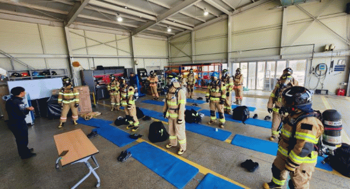 ƯÈ÷ ½ÇÈÀç ÈÆ·ÃÀå¿¡¼ ³ó¿¬ ȯ°æ ¼Ó ¿¬±âÂ÷´Ü ¹× ½Ã¾ß È®º¸¿ä·É, Àå¾Ö¹° Åë°ú ¹× ±ä±ÞÅ»Ãâ ÈÆ·Ã µîÀ» ½Ç½ÃÇÏ¿© ÈÀç ¹ß»ý ½Ã ½Å¼ÓÇϰí Ä§ÂøÇÑ ´ëÀÀ ´É·ÂÀ» °ÈÇß´Ù.