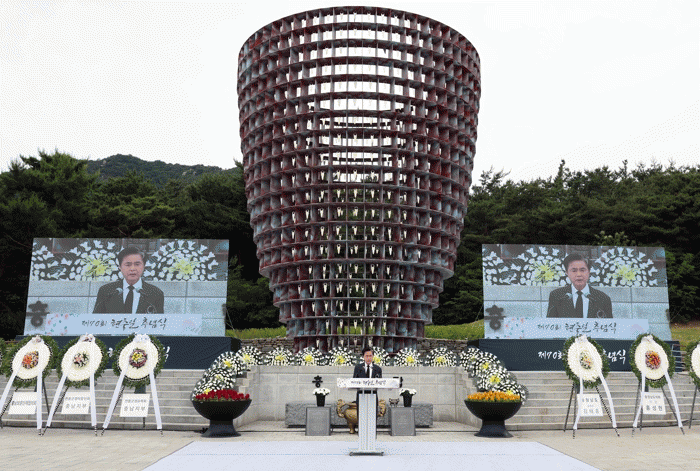 ÀÌ ÀÚ¸®¿¡¼ ±è Áö»ç´Â ¡°¿À´Ã³¯ ´ëÇѹα¹ÀÌ ´©¸®´Â ÀÚÀ¯¿Í ¹ø¿µÀº ¼ö¸¹Àº ¾Ö±¹Áö»ç¿Í È£±¹¿ë»çµéÀÇ ÇÇ¿Í ¶¡, ´«¹°·Î ºú¾î³½ ±ÍÇÑ °á½Ç¡±À̶ó¸ç ¡°µµ´Â ³ª¶ó¸¦ ÁöÄѳ½ ¼±¿µéÀÇ ¼þ°íÇÑ Èñ»ýÀ» ±â¾ïÇϸç, ¾Ö±¹Á¤½Å°ú È£±¹ÀÇ ¿ª»ç¸¦ À̾°¡°Ú´Ù¡±°í ¸»Çß´Ù.