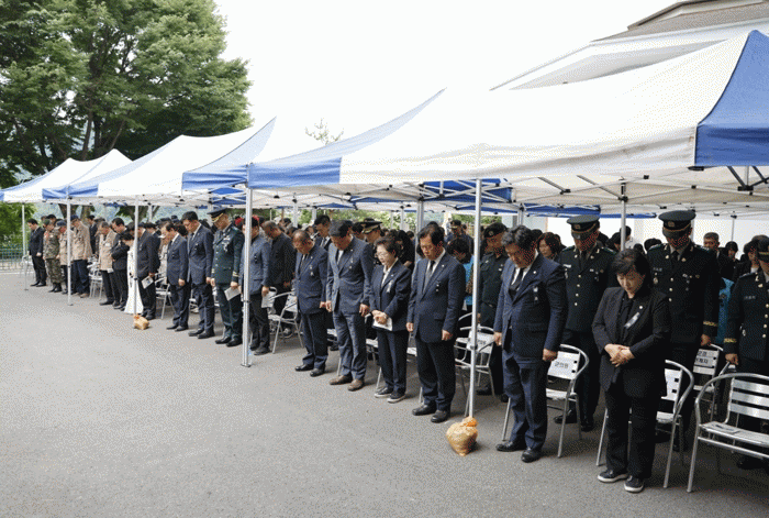 À̳¯ Ãß³ä½Ä¿¡´Â ±è¹®±Ù ´Ü¾ç±º¼ö¸¦ ºñ·ÔÇØ º¸Èư¡Á·, ±â°ü¡¤´ÜüÀå, Çлý, ÁֹΠµî 150¿© ¸íÀÌ Âü¼®ÇÑ °¡¿îµ¥, ³ª¶ó¸¦ À§ÇØ ¸ñ¼ûÀ» ¹ÙÄ£ ¼ø±¹¼±¿°ú È£±¹¿µ·ÉÀÇ ¼þ°íÇÑ Èñ»ýÀ» ±â¸®¸ç ±× ¶æÀ» µÇ»õ±â´Â ½Ã°£À» °¡Á³´Ù.