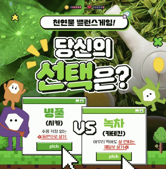 À̹ø À̺¥Æ®´Â ÇǺÎÁøÁ¤, Ç×»êÈ, Áö¹æºÐÇØ µî ´Ù¾çÇÑ È¿´ÉÀ¸·Î ¸¹Àº »ç¶ûÀ» ¹Þ°í ÀÖ´Â ´ëÇ¥ õ¿¬¹°ÀÎ º´Ç®(½ÃÄ«)°ú ³ìÂ÷(Ä«Å×Ų)¸¦ ÁÖÁ¦·Î, Âü¿©ÀÚ°¡ µÎ °¡Áö Áß Çϳª¸¦ ¼±ÅÃÇÏ°í ±× ÀÌÀ¯¸¦ ´ñ±Û·Î ³²±â´Â ¹æ½ÄÀ¸·Î ÁøÇàµÈ´Ù.