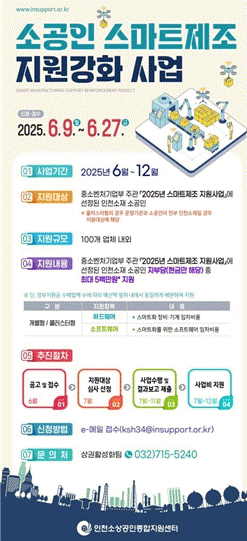 Áö¿ø ´ë»óÀº Áß¼Òº¥Ã³±â¾÷ºÎ°¡ ÁÖ°üÇÏ´Â ¡®2025³â ½º¸¶Æ®Á¦Á¶ Áö¿ø»ç¾÷¡¯¿¡ ¼±Á¤µÈ ÀÎõ ¼ÒÀç ¼Ò°øÀÎÀ¸·Î, ÀÎõ½Ã´Â ÃÑ 100°³ ³»¿ÜÀÇ ¾÷ü¸¦ ¼±Á¤ÇØ Áö¿øÇÒ °èȹÀÌ´Ù.