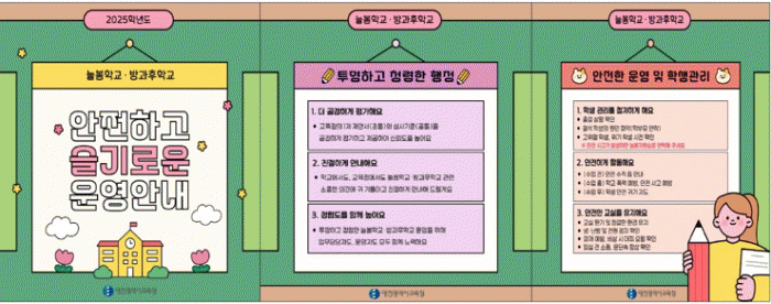 2025Çг⵵ ´Ãº½Çб³?Áßµî ¹æ°úÈÄÇб³ °»ç ´ë»ó ¿î¿µ ¾È³» ÀÚ·á¸íÀº ¡®´Ãº½Çб³?¹æ°úÈÄÇб³ ¾ÈÀüÇÏ°í ½½±â·Î¿î ¿î¿µ ¾È³»¡¯·Î Åõ¸íÇϰí û·ÅÇÑ ÇàÁ¤, ¾ÈÀüÇÑ ¿î¿µ ¹× Çлý °ü¸®¸¦ Ä«µå´º½º Çü½ÄÀ¸·Î Á¦ÀÛÇß°í, ¾ÕÀ¸·Îµµ Áö¼ÓÀûÀ¸·Î ¾È³»ÇÒ ¿¹Á¤ÀÌ´Ù.