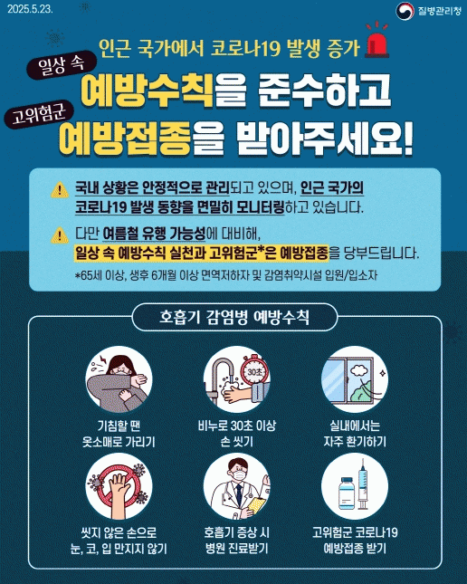 Àϻ󿡼 ½ÇÃµÇØ¾ß ÇÒ ÁÖ¿ä ¼öÄ¢À¸·Î´Â ¡ãºñ´©·Î 30ÃÊ ÀÌ»ó ¼Õ ¾Ä±â ¡ã2½Ã°£¸¶´Ù 10ºÐ ÀÌ»ó ȯ±âÇϱ⠡ã±âħ ½Ã ¿Ê¼Ò¸Å³ª ÈÞÁö·Î ÀÔ°ú ÄÚ °¡¸®±â ¡ãÀÇ·á±â°ü ¹× °¨¿° Ãë¾à½Ã¼³ ¹æ¹® ½Ã ¸¶½ºÅ© Âø¿ë ¡ã»ç¶÷ÀÌ ¸¹Àº ¹ÐÆó °ø°£¿¡¼´Â ¹Ýµå½Ã ¸¶½ºÅ© Âø¿ëÇϱ⠵îÀÌ ÀÖ´Ù.