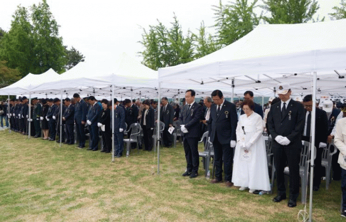 ÀÌÃæ±Ç Àü¸ô±º°æÀ¯Á·È¸ÀåÀº ¡°Ãß³ä½Ä¿¡ ÀÚ¸®¸¦ °°ÀÌ ÇØ Áֽа¢ ±â°ü ´ÜüÀå, À¯Á·, ½Ã¹Îµé¿¡°Ô °í¸¶¿òÀÇ Àλ縦 ÀüÇÑ´Ù¡±¸ç ¡°À̰÷Àº 75³â Àü 6.25ÀüÀï ¹ß¹ß·Î ¹ÎÁ·À» ±¸Çϱâ À§ÇØ Àå·ÄÈ÷ Àü»çÇÑ ¿µ·ÉµéÀÇ À§ÆÐ°¡ ¾ÈÄ¡µÈ °÷À¸·Î ´Ù½Ã Çѹø ´õ È£±¹¿µ·ÉÀÇ ¶æÀ» ±â¸®°í ³ª¶ó¸¦ »ç¶ûÇÏ´Â ¸¶À½À» ±»°ÇÈ÷ ÇÏÀÚ¡±°í °Á¶Çß´Ù.