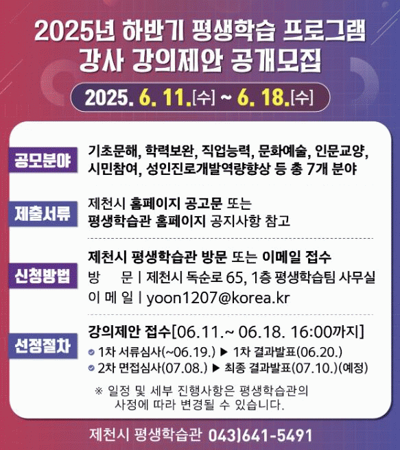 Á¦Ãµ½Ã´Â À̹ø °ø¸ð¸¦ ÅëÇØ °ü³»¡¤¿Ü °»ç°¡ Á¦¾ÈÇÏ´Â Âü½ÅÇÑ °Á¸¦ ¹ß±¼ÇÏ¿© Æò»ýÇнÀÀÇ ´Ù¾çȸ¦ ¸ð»öÇÏ°í ½Ã¹Î¿¡°Ô Æø³ÐÀº Æò»ýÇнÀ ±âȸ¸¦ Á¦°øÇÒ °èȹÀ̶ó°í ¹àÇû´Ù.