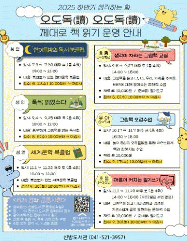 ¸ÕÀú ¼ºÀÎ ´ë»ó ÇÁ·Î±×·¥Àº ¡ã7¿ù, ÇÑ¿©¸§¹ãÀÇ µ¶¼ ºÏŬ·´ ¡ã9¿ù, Æø½Ï Àоú¼ö´Ù ¡ã11¿ù, ¼¼°è¹®ÇÐ ºÏŬ·´ÀÌ ¿î¿µµÈ´Ù.
