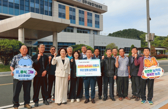 ÁøÁֽóó¾÷ÀδÜüÇùÀÇȸ´Â ¡°¾ÈÀüÇÑ ³óÃÌÀÏÅÍ! ¿ì¸® ÇÔ²² ½ÇÃµÇØ¿ä¡±¸¦ ¿ÜÄ¡¸ç ³óÀÛ¾÷ Áß ¹ß»ýÇÒ ¼ö ÀÖ´Â ÀçÇØ¸¦ ¿¹¹æÇϰí, Æø¿°´ëºñ ¾ÈÀü ¼öÄ¢°ú ³óÀÛ¾÷ ¾ÈÀüÀÇ Á߿伺À» ¾Ë¸®´Âµ¥ ÃÖ¼±À» ´ÙÇϰڴٴ ¾ÈÀü ½Çõ ÀÇÁö¸¦ ´ÙÁ³´Ù.