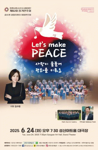 À̹ø °ø¿¬Àº ¡®Let¡¯s Make Peace - »ç¶ûÀÌ ¹°µé¾î Æòȸ¦ ÀÌ·ï¿ä¡¯¶ó´Â ÁÖÁ¦·Î ÁøÇàµÇ¸ç, ±è¼öÇö »óÀÓÁöÈÖÀÚÀÇ ÃëÀÓ ¿¬ÁÖȸ·Î ¿¸°´Ù.