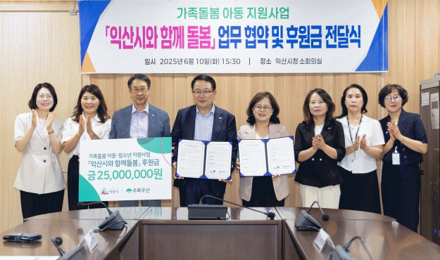 ÀÍ»ê½Ã´Â 10ÀÏ ½Ãû ¼ÒȸÀǽǿ¡¼ ÃÊ·Ï¿ì»ê ÀüºÏÁö¿ªº»ºÎ¿Í '°¡Á·µ¹º½ ¾Æµ¿ Áö¿øÀ» À§ÇÑ ¾÷¹« Çù¾à'À» ü°áÇϰí, °øµ¿ µ¹º½»ç¾÷ÀÎ 'ÀÍ»ê½Ã¿Í ÇÔ²² µ¹º½' ÃßÁø¿¡ ³ª¼¹´Ù.