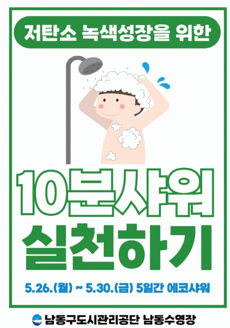 Ä·ÆäÀÎÀº ¼ö¿µÀå ³» »þ¿ö °ø°£¿¡¼ÀÇ ¿Â¼ö »ç¿ë·®À» ÁÙÀ̱â À§ÇÑ ÀÚ¹ßÀû Àý¼ö ½Çõ Ä·ÆäÀÎÀ¸·Î, °í°´ÀÌ »þ¿ö ½Ã°£À» 10ºÐ À̳»·Î Çϵµ·Ï À¯µµÇÏ´Â ¹æ½ÄÀ¸·Î 5¿ù 26~30ÀϱîÁö ´å»õ°£ ÁøÇàµÆ´Ù.