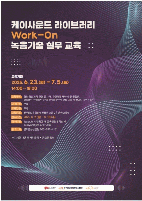 À̹ø ¡®ÄÉÀÌ»ç¿îµå ¶óÀ̺귯¸® Work-On ³ìÀ½±â¼ú ½Ç¹« ±³À°¡¯Àº È¿°úÀ½¿ø Á¦ÀÛ ±Ô°Ý¿¡ ´ëÇÑ ÀÌÇØ¸¦ ¹ÙÅÁÀ¸·Î Çѱ¹Çü È¿°úÀ½¿ø Á¦ÀÛ¿¡ ÇÊ¿äÇÑ Àü °úÁ¤ÀÇ ½Ç¹«Çü ±â¼ú ±³À°À» Àü¾× ¹«·á·Î Á¦°øÇÑ´Ù.