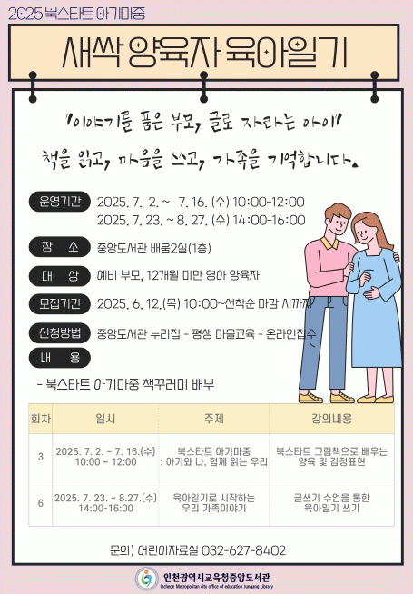 Âü¿©ÀÚ¿¡°Ô´Â À°¾Æ¿¡ µµ¿òÀÌ µÇ´Â ¾Æ±â¸¶Áß Ã¥²Ù·¯¹Ì(2±Ç)¸¦ Á¦°øÇϸç, À°¾ÆÀϱâ Ãâ°£À» À§ÇÑ ±Û¾²±â Ȱµ¿ÀÌ 7¿ù 2ÀϺÎÅÍ 8¿ù 27ÀϱîÁö ¸ÅÁÖ ¼ö¿äÀÏ 9ȸ¿¡ °ÉÃÄ ÁøÇàµÈ´Ù.