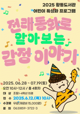 À̹ø ÇÁ·Î±×·¥Àº ÃʵîÇб³ 1~4ÇгâÀ» ´ë»óÀ¸·Î ÃÑ 4ȸ¿¡ °ÉÃÄ ÁøÇàµÈ´Ù. Àü·¡µ¿È ¼Ó µîÀåÀι°ÀÇ °¨Á¤À» »ìÆìº¸¸ç ´Ù¾çÇÑ °¨Á¤À» ÀÚ¿¬½º·´°Ô ÀÌÇØÇϰí, ÀÚ½ÅÀÇ °¨Á¤À» °Ç°ÇÏ°Ô Ç¥ÇöÇÒ ¼ö ÀÖµµ·Ï ±¸¼ºµÆ´Ù.