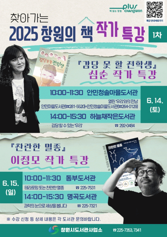 ½É¼ø ÀÛ°¡ Ư°Àº 6¿ù 14ÀÏ Åä¿äÀÏ ¡â¾È¹Îû¼Ö¸¶À»µµ¼°ü(10:00 ~ 11:30) ¡âÇÏ´ÃäÀÛÀºµµ¼°ü(14:00 ~ 15:30)¿¡¼ ÁøÇàµÇ¸ç, ÀÌÁ¤¸ð ÀÛ°¡ Ư°Àº 6¿ù 15ÀÏ ÀÏ¿äÀÏ ¡âµ¿ºÎµµ¼°ü(10:00 ~ 11:30) ¡â¸í°îµµ¼°ü(14:00 ~ 15:30)¿¡¼ ÁøÇàµÈ´Ù.