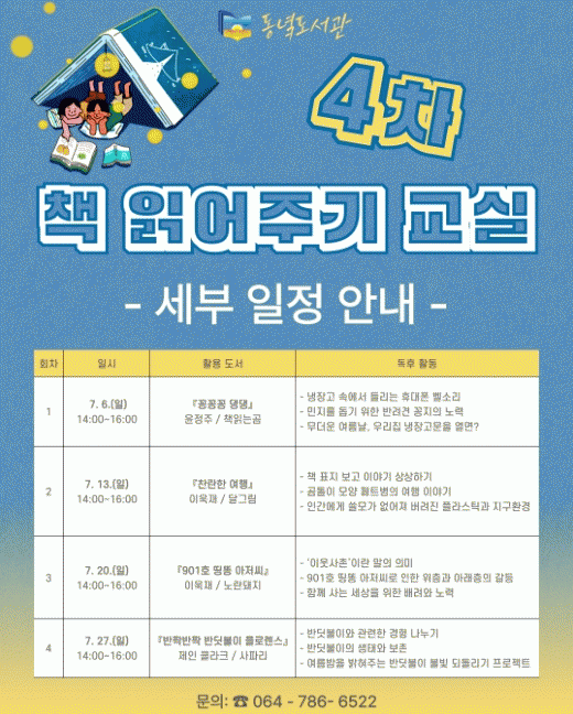 Ã¥ ÀоîÁֱ⠱³½ÇÀº µ¶¼Áöµµ ¹× Ã¥³îÀÌ Àü¹® °»ç ±è¹Ì¿µÀÇ ÁøÇàÀ¸·Î¡®²Ç²Ç²Ç ´ó´ó, Âù¶õÇÑ ¿©Çà, 901È£ ¶ò¶Ë ¾ÆÀú¾¾, ¹Ý¦¹Ý¦ ¹Ýµ÷ºÒÀÌ Ç÷η»½º¡¯µî ±×¸²Ã¥À» ÇÔ²² ÀÐ°í ´Ù¾çÇÑ µ¶ÈÄ È°µ¿À» Áß½ÉÀ¸·Î ¿î¿µµÈ´Ù.