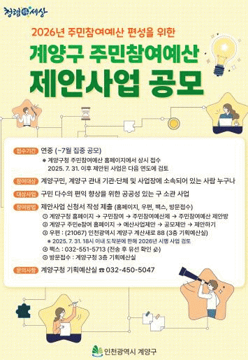 Á¢¼öµÈ »ç¾÷Àº »ç¾÷ ºÎ¼ °ËÅä ÈÄ ÁÖ¹ÎÂü¿©¿¹»êÀ§¿øÈ¸ÀÇ ½ÉÀÇÁ¶Á¤À» ÅëÇØ ÃÖÁ¾ ¼±Á¤µÇ¸ç, ÇâÈÄ 2026³âµµ º»¿¹»ê¿¡ ¹Ý¿µµÉ ¿¹Á¤ÀÌ´Ù.