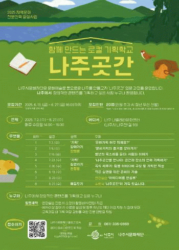 ³ªÁֽù®ÈÀç´ÜÀº ¹®ÈÀÚ¿øÀ» Ȱ¿ëÇÑ ½Ã¹Î Á᫐ ±âȹ ¿ª·® °È¸¦ À§ÇØ ¡®ÇÔ²² ¸¸µå´Â ·ÎÄà ±âȹÇб³ ¡®³ªÁÖ°÷°£¡¯À» °³¼³Çϰí Áö¿ª¹®È¿¡ °ü½É ÀÖ´Â ½Ã¹ÎÀ» ´ë»óÀ¸·Î ±³À° Âü¿©ÀÚ¸¦ ¸ðÁýÇÑ´Ù°í 17ÀÏ ¹àÇû´Ù.