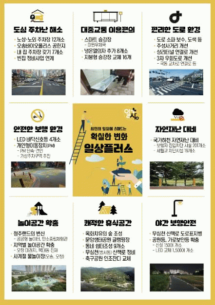 ¾ÈÀü ºÐ¾ß¿Í °ø°øÆíÀǽü³ ½ÃÃ¥µµ ¼øÁ¶·Ó°Ô ÃßÁø ÁßÀÌ´Ù. ¾ß°£¿¡ »êÃ¥À» Áñ±â´Â ½Ã¹ÎµéÀÇ ¾ÈÀüÀ» À§ÇØ ¹«½Éõ »êÃ¥·Î ûÁÖ´ë±³~±îÄ¡³»±³ 6km¿¡ ±¸°£¿¡ µµ·ÎÇ¥Áöº´À» ¼³Ä¡ÇßÀ¸¸ç, °ø¿ø°ú µµ·Îº¯ °¡·Î º¸¾Èµîµµ 150¿©°³¼Ò¿¡ ½Å¼³Çß´Ù. ³ëÈÄ °¡·Îµî 1õ500¿©°³¼Ò´Â LED·Î ±³Ã¼Çß´Ù.